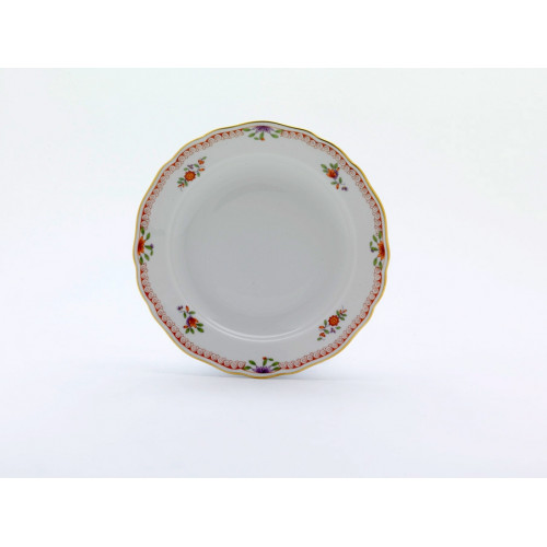 Teller, Form "Neuer Ausschnitt", Ostasiatisches Vasendekor, bunt mit Kupferfarben, Goldrand, ø 18 cm