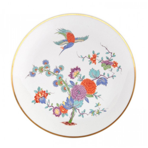 Wandschale, Ind.Vogel-u.Blumenmalerei 99,o.Kte.bunt m.Kpferf.Goldfad.bzw.Goldreif.,