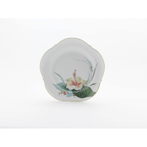 Teller m.H., Form "Großer Ausschnitt", Exotische Wasserpflanzen, Goldrand, ø 25,5 cm