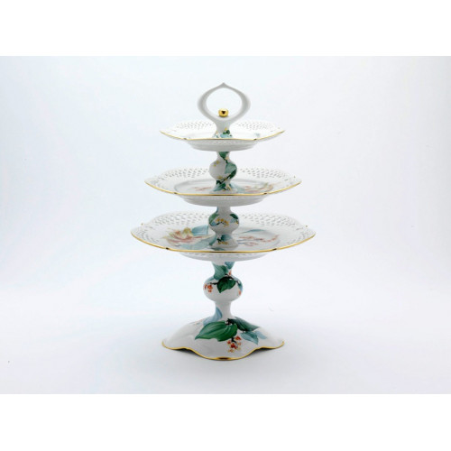 Etagere durchbrochen, Exotische Wasserpflanzen, Goldrand, H 42 cm