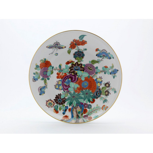 Wandschale, Ganz reiche antike ind.Blumen- u.Schmetterlingsmalerei,Goldrand, Ø 34 cm