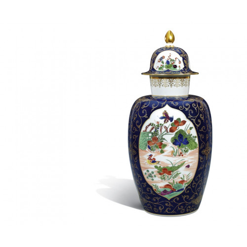 Deckelvase "Indischer Malerei", kobaldtblauer Fond, H 53 cm