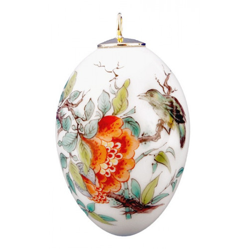 Miniatur-Ei, Japanische Vogel-,Blumen- und Astmotive ohne Kante,weißer Rand, H 4,5 cm