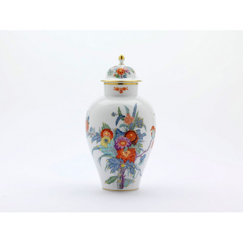 Vase, Stil.jap.Blumen-u.Blattmotive m.Vogel am Bambusstab,bunt m.Kpff.Goldr., H 24,5 cm