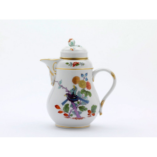 Kaffeekanne, Zwei Vögel a.Stamm u.Chrysanthemen,bunt m.Kpff.,Golddek.entspr.d.Art., 0,8 l