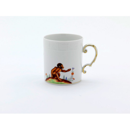 Kaffeebecher Sulkowski, Affen nach Löwenfink auf Terasse, ind. Blümch., bunt, Sondersignet, V 0 l