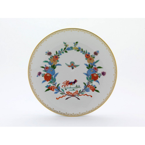 Wandschale, Asiatische Vogel-u.Insektenmalerei,bunt m.Kupferf.,Goldkte.19,Goldrand,