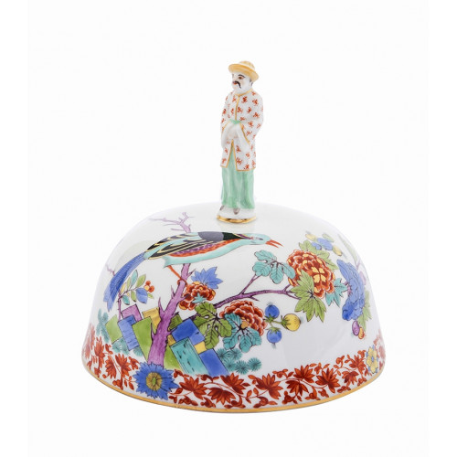 Glocke, Kantig gestaff.Felsen,Vogel a.Stamm,ind.Blumen,bunt m.Kupferf.,Goldrd., 13,5 cm