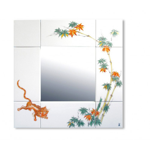 Spiegel, Roter Löwe, weißer Rand, 40x40 cm