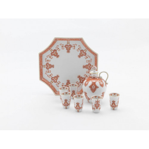 Platte,achteckig, Stil.Blüten-,Blatt-,u.Rankenmotiv m.reicher Kante,rot u.gold,Goldfaden, L 21 cm