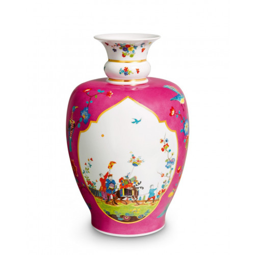 Vase, Chinoiserien n. Löwenfink,bunt mit Kupferfarben,purpur Fond,Limitierte Meisterwerke, H 40 cm