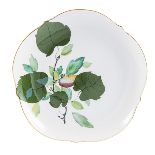 Teller, Form "Großer Ausschnitt", Waldlaubmalerei,kombiniert Unterglasur,grün und Aufglasur,bunt,Goldrd.