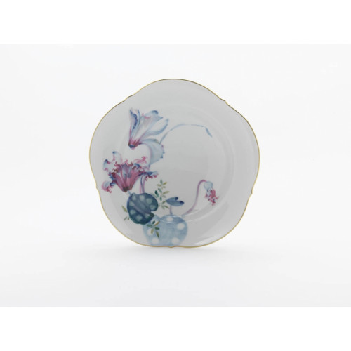 Suppenteller, Form "Großer Ausschnitt", Blumenmalerei,kombiniert Unterglasur,kobaltblau u.Aufglasurm.,Goldrand, ø 23 cm