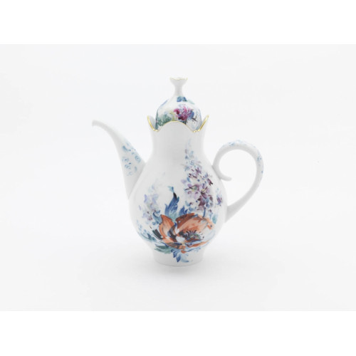 Kaffeekanne, Form "Großer Ausschnitt", Blumenmalerei,kombiniert Unterglasur,kobaltblau u.Aufglasurm.,Goldrand