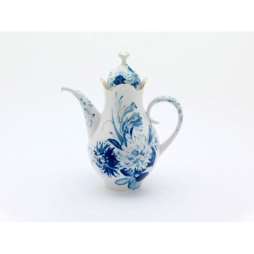 Kaffeekanne, Form "Großer Ausschnitt", Blumenmalerei,komb. Unterglasur,kobaltblau,Aufglasur bunt, V 1,65 l