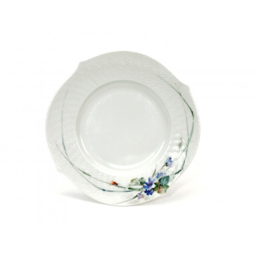 Teller, Form "Wellenspiel Relief", Waldflora mit Insekten, bunt, weißer Rand, ø 19 cm