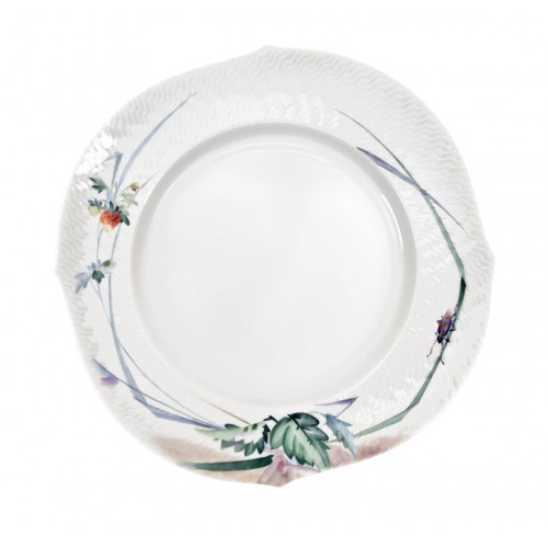 Teller, Form "Wellenspiel Relief", Waldflora mit Insekten, bunt, weißer Rand, ø 22,5 cm