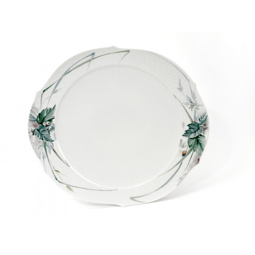 Tortenplatte, Form "Wellenspiel Relief", Waldflora mit Insekten, bunt, weißer Rand, ø 38,5 cm
