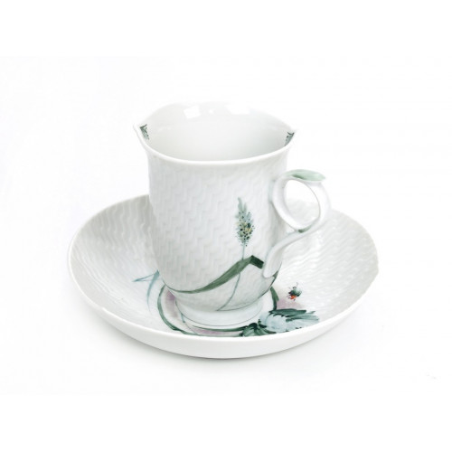 Kaffeetasse m.U., Form "Wellenspiel Relief", Waldflora mit Insekten, bunt, weißer Rand, V 0,18 l
