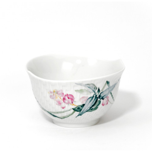 Kopchen, Form "Wellenspiel Relief", Waldflora mit Insekten, bunt, weißer Rand, H 4,9 cm