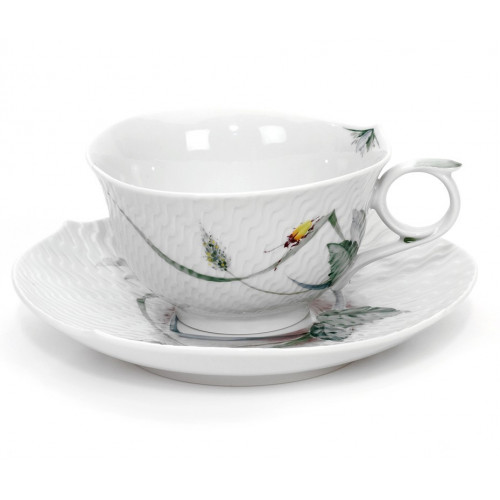 Teetasse m.U., Form "Wellenspiel Relief", Waldflora mit Insekten, bunt, weißer Rand, V 0,17 l