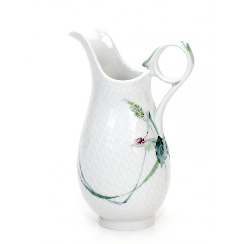 Milchkännchen, Form "Wellenspiel Relief", Waldflora mit Insekten, bunt, weißer Rand, V 0,30 l