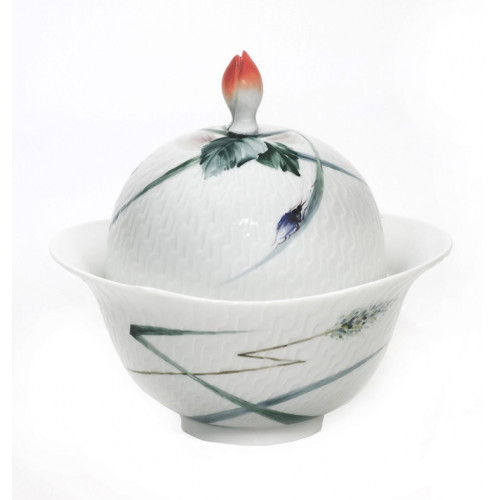 Zuckerdose, Form "Wellenspiel Relief", Waldflora mit Insekten, bunt, weißer Rand, V 0,20 l