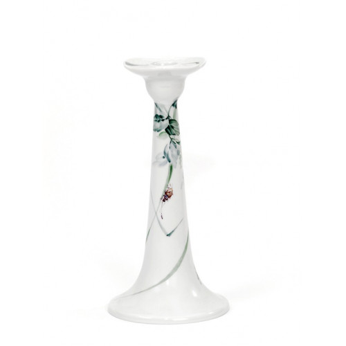 Leuchter mit Relief, Form "Wellenspiel Relief", Waldflora mit Insekten, bunt, weißer Rand, H 21,5 cm