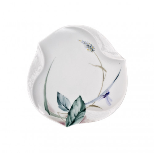 Schälchen mit Relief, Form "Wellenspiel Relief", Waldflora mit Insekten, bunt, weißer Rand, Ø 12,5 cm