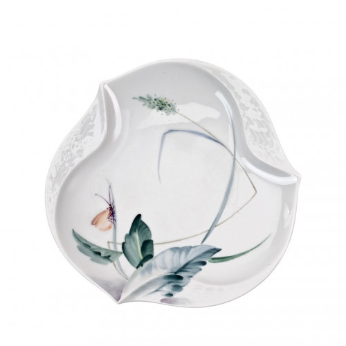 Schälchen mit Relief, Form "Wellenspiel Relief", Waldflora mit Insekten, bunt, weißer Rand, Ø 15,5 cm