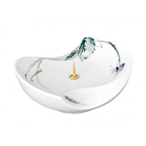 Leuchter, Form "Wellenspiel Relief", Waldflora mit Insekten, bunt, weißer Rand, H 6 cm