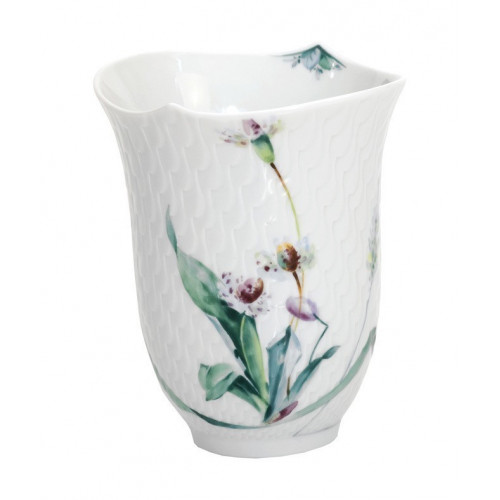 Becher, Form "Wellenspiel Relief", Waldflora mit Insekten, bunt, weißer Rand, H 10,5 cm