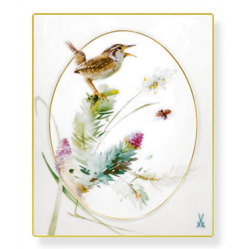 Wandplatte, Vogelmotive nach Gruber, bunt Goldrand, 15 x 18 cm