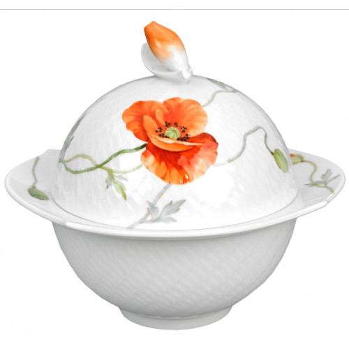 Dose, Form "Wellenspiel Relief", Blumenmalerei "Wilder Mohn", rot, weißer Rand, H 15,5 cm