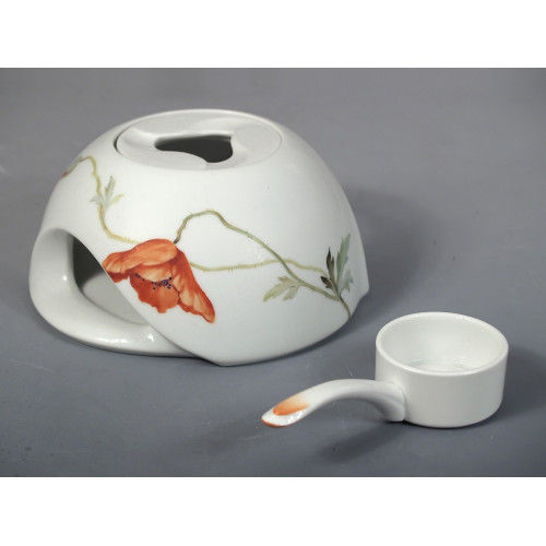 Stövchen Wellenspiel, Blumenmalerei "Wilder Mohn", rot, weißer Rand, ø 16 cm