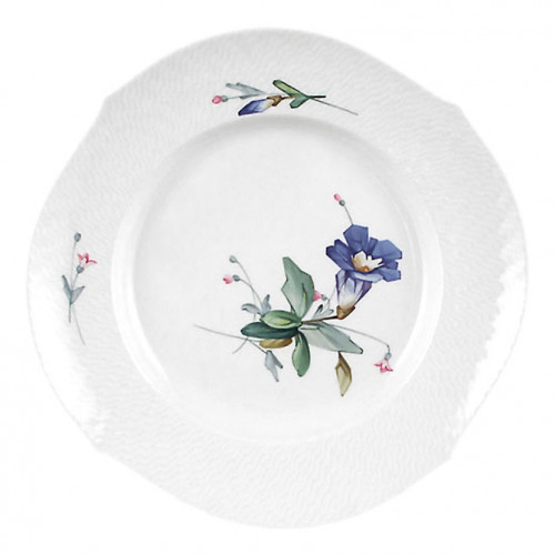Teller, Form "Wellenspiel Relief", Alpenflora, filigran, bunt, weißer Rand, ø 22,5 cm