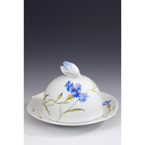 Käsedose, Form "Wellenspiel Relief", Kornblume, blau, Ø 19 cm