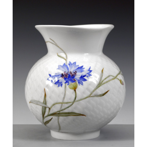 Vase mit Relief, Blumenmalerei "Kornblume", blau, H 13,5 cm