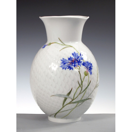 Vase mit Relief, Blumenmalerei "Kornblume", blau, H 20,5 cm