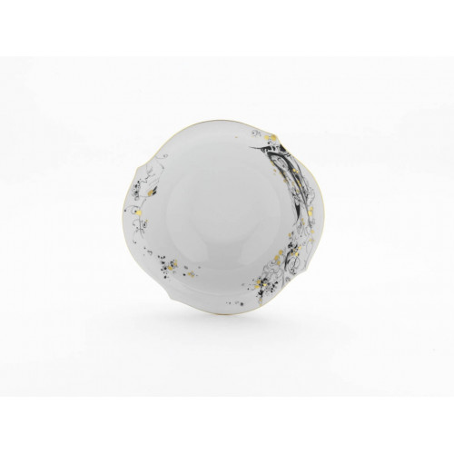 Schüssel, rund, Festlicher Ball, Federarbeit, türkisblau glasiert, Goldrand, ø 21,5 cm