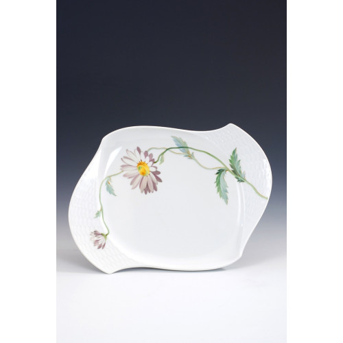 Platte, oval, Form "Wellenspiel Relief", Blumenmalerei "Margerite", L 25,5 cm