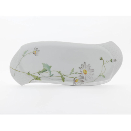 Platte, eckig, Form "Wellenspiel Relief", Blumenmalerei "Margerite", L 43 cm