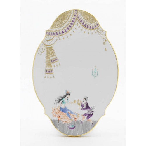 Wandplatte, Motive aus 1001-Nacht, grafische, Goldrand, 28,5 x 19,5 cm