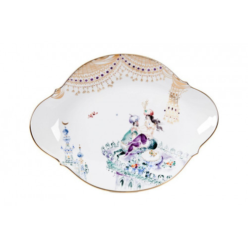 Platte, oval, Motive aus 1001 Nacht, malerisch, Goldrand, L 31 cm