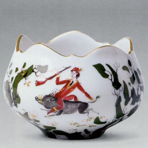 Zuckerschale, Jägerlatein,kombiniert Unterglasur,grün und Aufglasur,bunt,Goldrand, ø 7 cm
