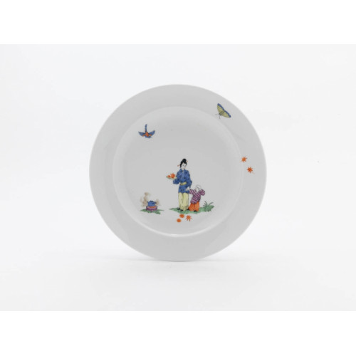 Speiseteller, Form "Glatte Form", Ostasiatische Figurenmalerei, bunt mit Kupferf., weißer Rand, 25 cm