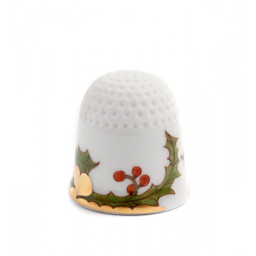 Fingerhut, Stechpalme, Federzeichnung rot, grün u. Gold, Goldflächen, weißer Rand, 2,5 cm