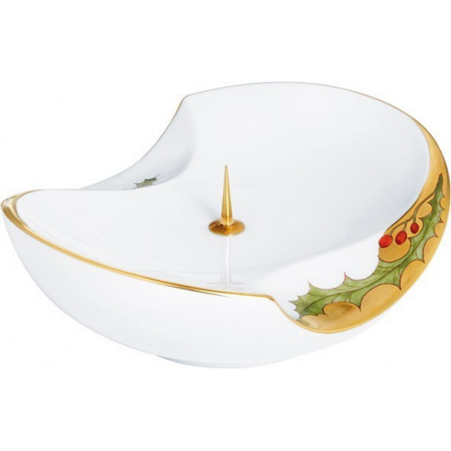 Leuchter, Form "Wellenspiel Pur", Stechpalme, bunt und gold, Goldrand, H 6 cm