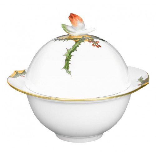 Dose, Form "Wellenspiel Pur", Stechpalme, bunt und gold, Goldrand, H 15,5 cm