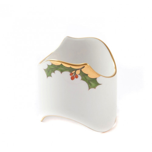 Serviettenring, Form "Wellenspiel Pur", Stechpalme, bunt und gold, Goldrand, L 5 cm